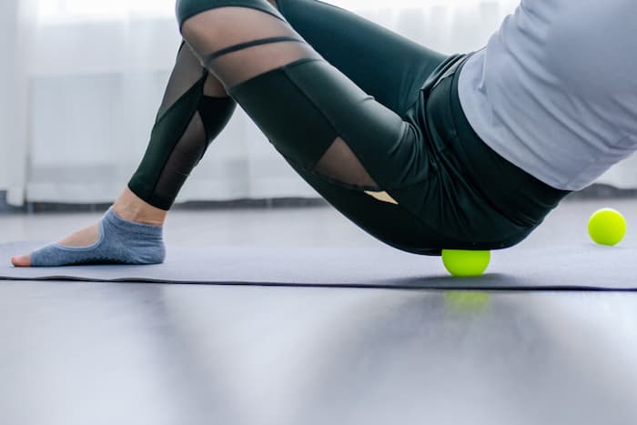 ・硬質ゴムボールで大腿筋膜張筋、大臀筋をストレッチ。今日も痛気持ちいい感じ。(アイキャッチ画像参照)
