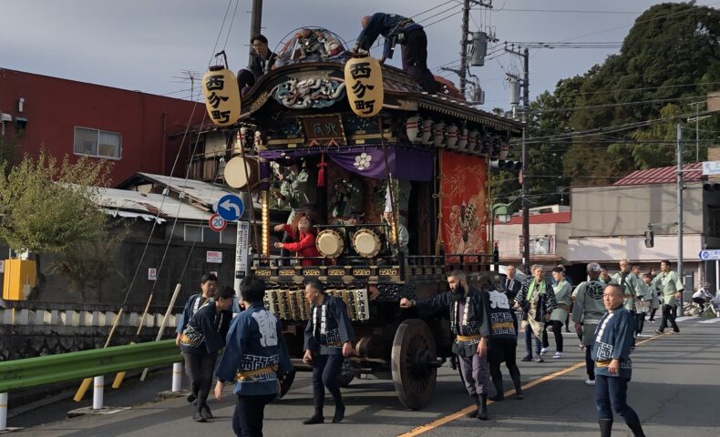 ・青梅駅が近くなってくると祭囃子が聞こえてきて神輿車が出現。秋祭りなのでしょうね。写真はアイキャッチ画像参照願います。