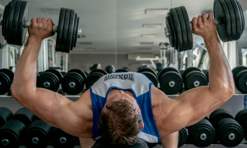 ダンベルプレス22kg-24kg-26kg-28kgを22-24-28kgにすると7回達成!